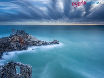 Puzzle Ruiny, Niebo, Morze, Skała