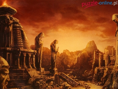 Puzzle Posągi, Ruiny, Ogień