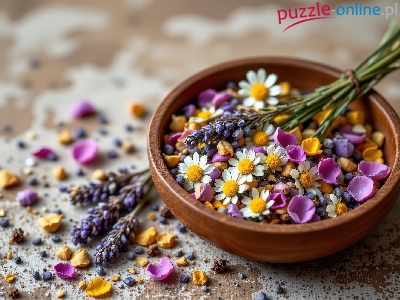 Puzzle Miska, Kwiaty, Lawenda, Rumianek