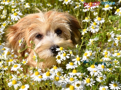 Puzzle Głowa, Jasnobrązowy, Pies, Rumianki