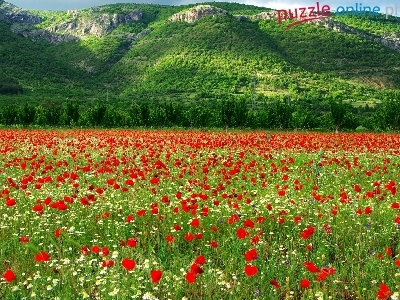 Puzzle Rumianki, Wzgórza, Pole, Maki