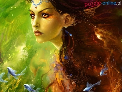 Puzzle Rybki, Piękna, Dziewczyna, Fantazja