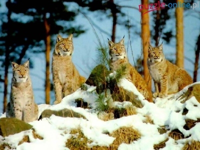 Puzzle las, Rysie, śnieg