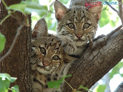 Puzzle Rysie Amerykańskie, Dwa, Młode, Drzewo