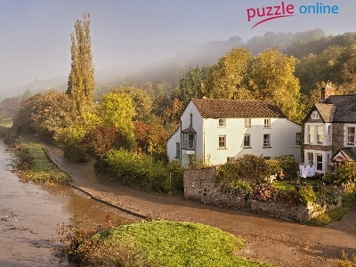 Puzzle Rzece, Dom, Przy, Drzewa