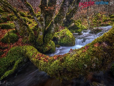 Omszałe, Rzeczka, Drzewa, Las, Potok