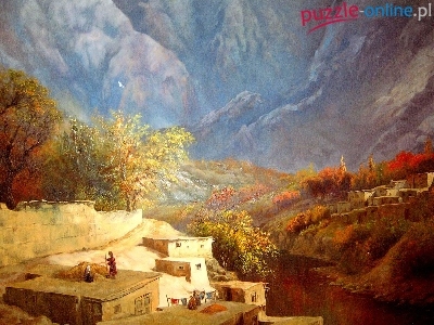Puzzle Rzeczka, Góry, Miasteczko, Obraz
