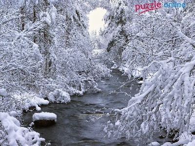 Puzzle Ośnieżone, Rzeczka, Drzewa