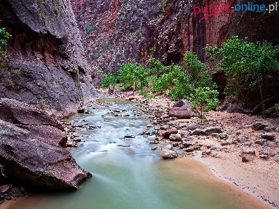 Puzzle Rzeczka, Góry, Skały, Drzewka