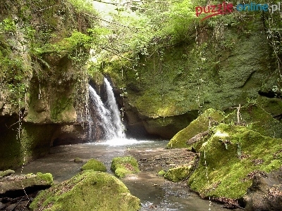 Puzzle Rzeczka, Skały, Wodospad, Mchy