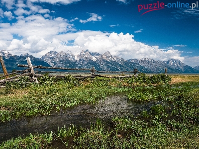Puzzle Rzek, Góry, Chmury, Łąka
