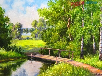 Rzeka, Lato, Zagajnik, Brzozy, Kładka