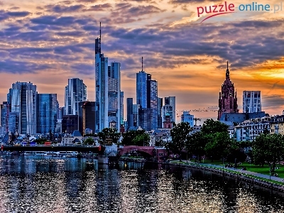 Puzzle Rzeka, Zachód Słońca, Drapacze Chmur, Miasto