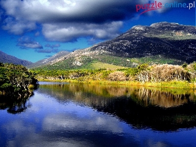 Puzzle Rzeka, Góra, Chmury, Krajobraz