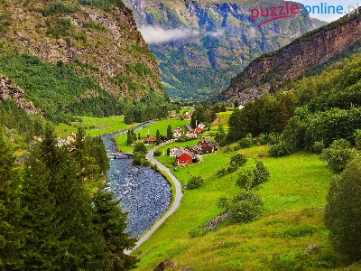 Puzzle Rzeka, Góry, Dolina, Wieś