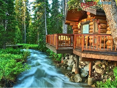 Rzeka, Domek, Drewniany, Las
