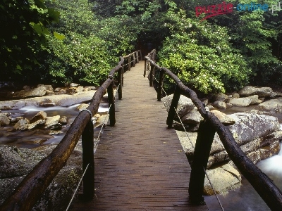 Rzeka, Rododendron, Most, Drewniany, Kamienie