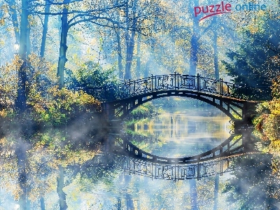 Puzzle Rzeka, Jesień, Drzewa, Most