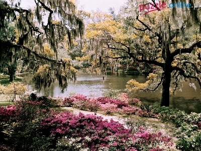 Puzzle Drzewa, Rzeka, Kwiaty