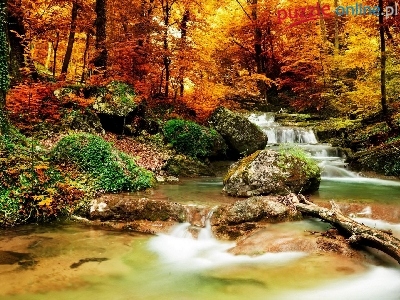 Rzeka, Kamienie, Las, Drzewa, Liście