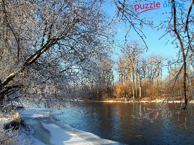 Puzzle Drzewa, Rzeka, Zima