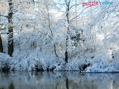 Puzzle Drzewa, Rzeka, Zima