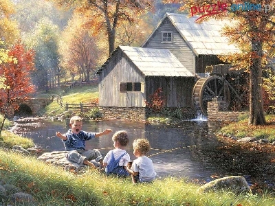 Puzzle Rzeka, Obraz, Dzieci, Wędkowanie