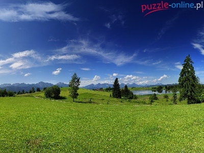 Puzzle Rzeka, Łąki, Góry, Chmury