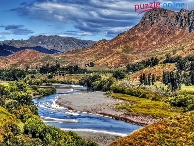 Puzzle Rzeka, Chmury, Góry, Drzewa