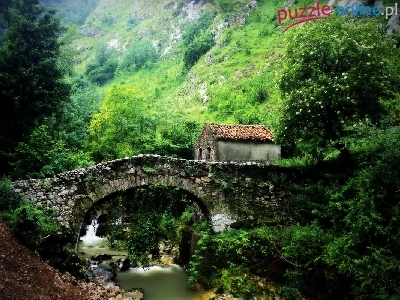 Puzzle Rzeka, Mostek, Góry, Chatka
