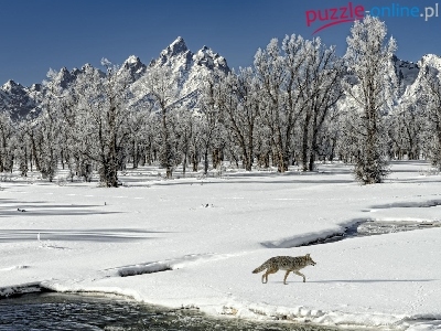 Puzzle Rzeka, Wilk, Góry, Zima