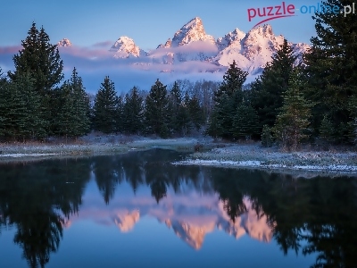 Rzeka, Wyoming, Góry, Las, Grand Teton