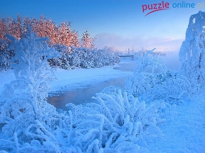 Puzzle Rzeka, Drzewa, Krzewy, Åšnieg