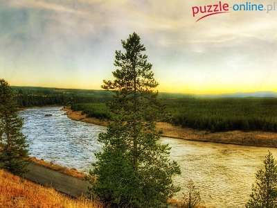 Puzzle Rzeka, Krajobraz, Las, Niebo