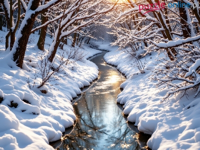 Zima, Rzeka, Las, Drzewa, Śnieg