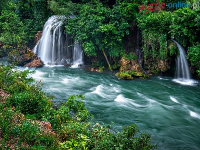 Wodospad, Rzeka, Las, Rośliny, Zielone