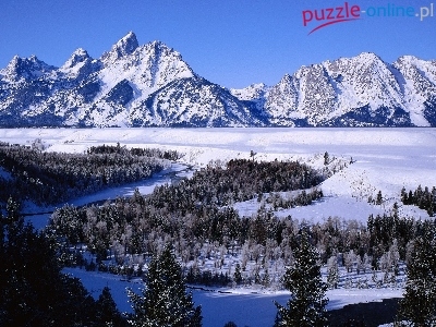 Puzzle Rzeka, Góry, Lasy, Zima
