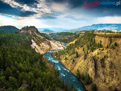 Puzzle Rzeka, Krajobraz, Góry, Z lotu ptaka