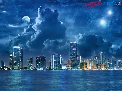 Puzzle Miasto, Rzeka, Noc