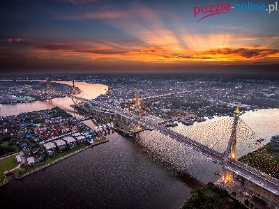 Rzeka, Bangkok, Azja, Tajlandia, Most, Noc