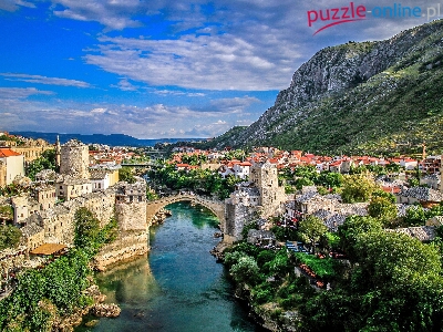Rzeka Neretwa, Góry, Bośnia i Hercegowina, Mostar, Most