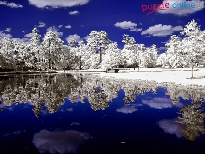 Puzzle Rzeka, Drzewa, Śnieg, Zima