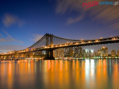 Brookliński, Manhattan, Nocą, Nowy Jork, Miasto, Most, USA, Rzeka