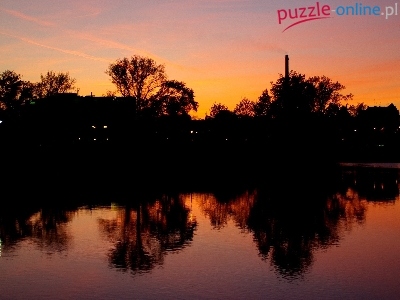 Odbicie, Rzeka, Wrocław, Zachód Słońca, Drzewa, Miasto