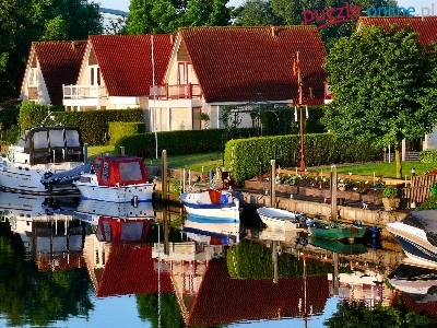 Puzzle Rzeka, Domki, Łodzie, Holandia