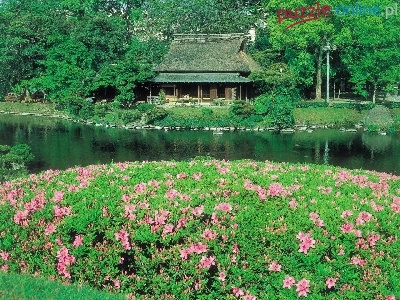 Puzzle Rzeka, Dom, Ogród, Kwiatki