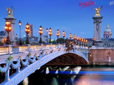 Puzzle Rzeka, Most, Oświetlenie, Paryż