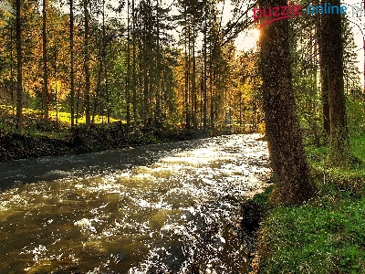 Rzeka, Światło, Las, Rwąca, Przebijające
