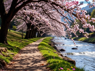 Puzzle Ścieżka, Drzewo, Gałęzie, Rzeka