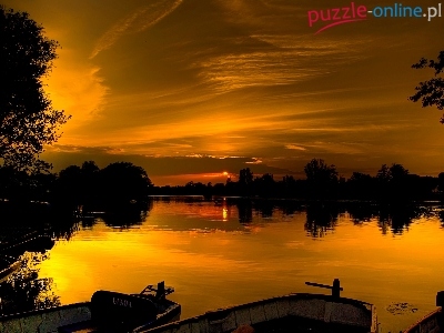 Puzzle Rzeka, Zachód, Słońca, Łódki